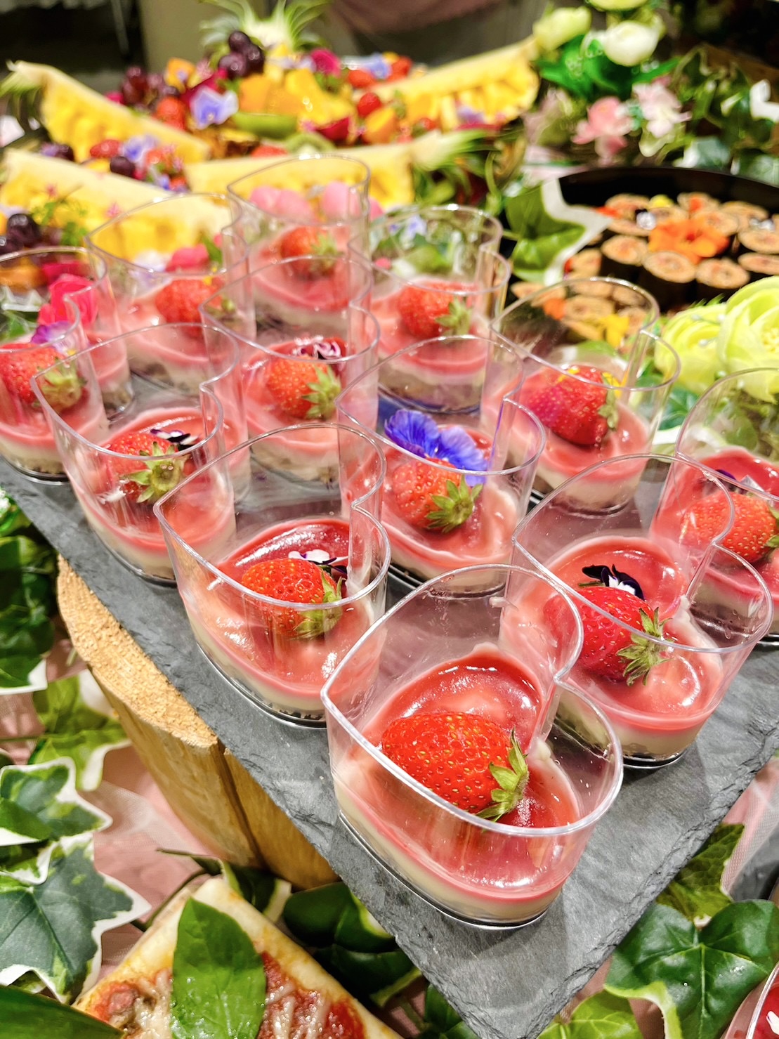 イベント会場に料理をお届けし、美しくセッティングいたします。ご希望に応じて、シェフやスタッフがその場でサーブすることも可能です。